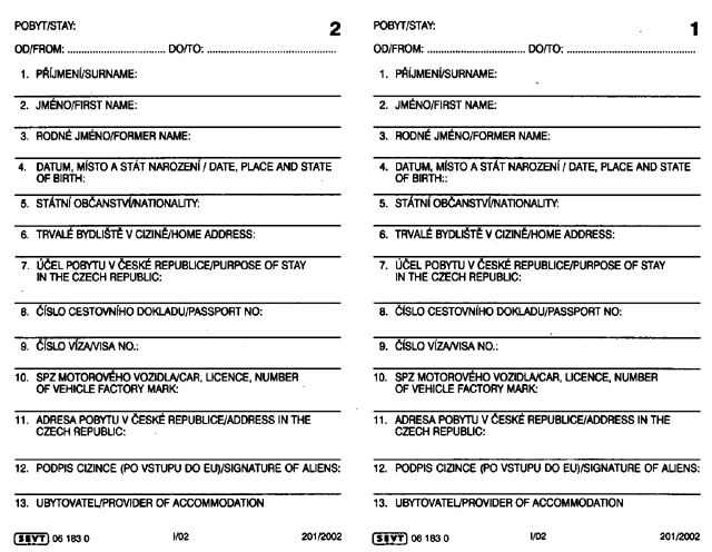 Справка о прописке - на чешском